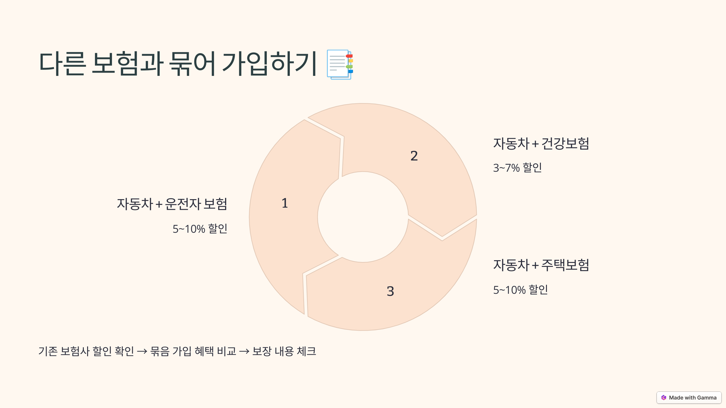 같은 보험사를 이용하면 관리도 편리하고, 추가 할인까지 받을 수 있으니 본인의 상황에 맞게 최적의 조합을 찾아보세요! 😊